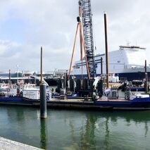 Für Rijkswaterstaat GPO wurde in der 2. Hälfte des Jahres 2017 an der Goese Kade in Terneuzen ein 180 m langer neuer Kai mit 130 m Anlegesteg gebaut, ...