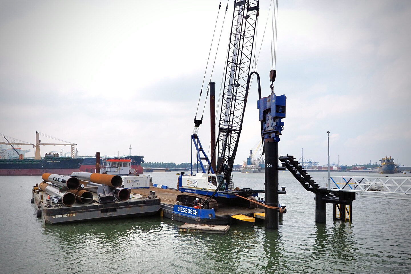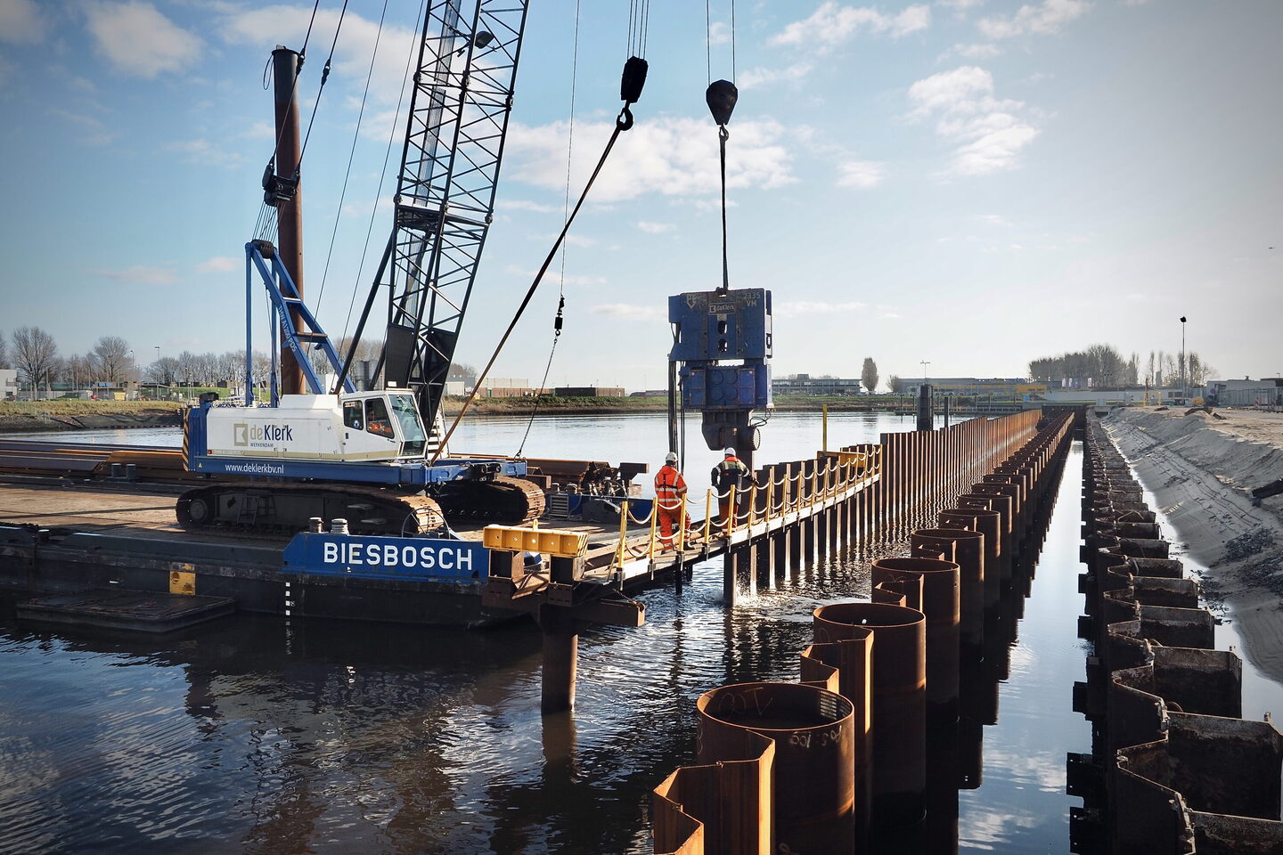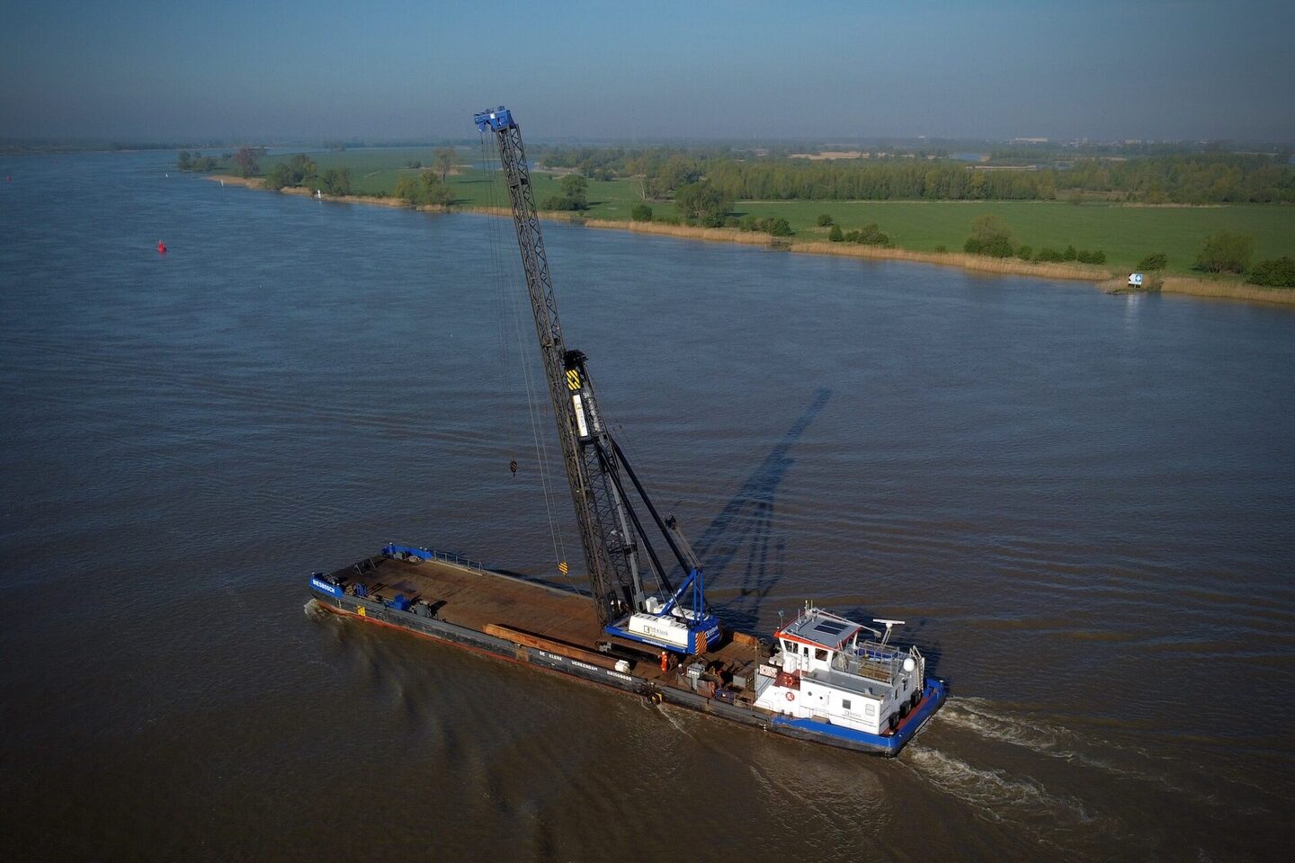 Naast het plaatsen van funderingen en constructies is de Biesbosch ook inzetbaar voor hijswerkzaamheden. Of het nu gaat om het aanbrengen van zware onderdelen of het opbouwen van steigers, dit heischip combineert kracht met precisie.