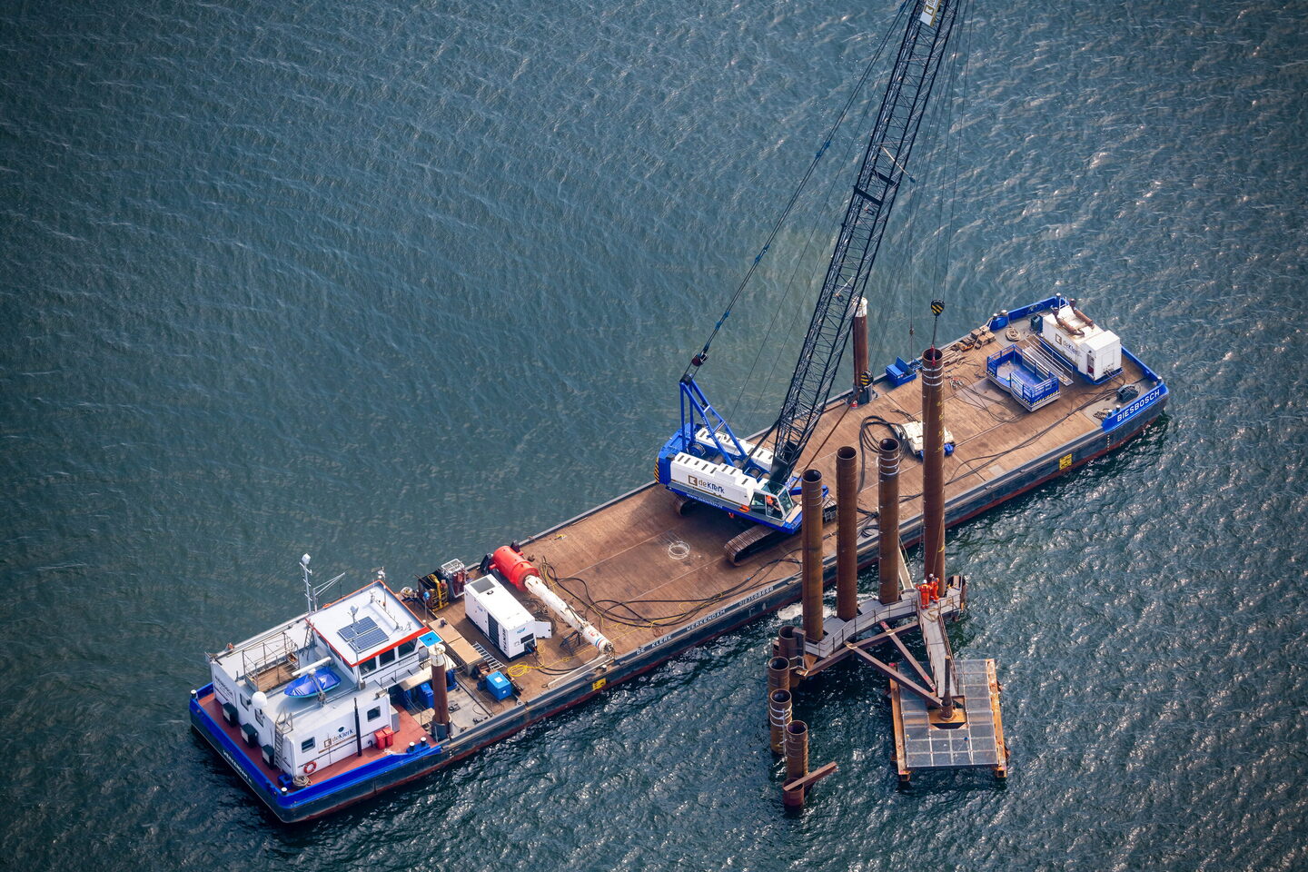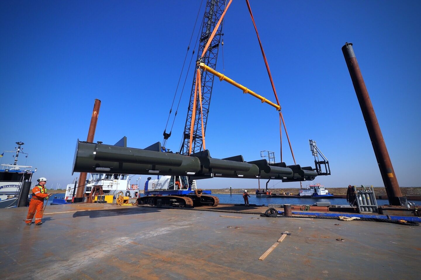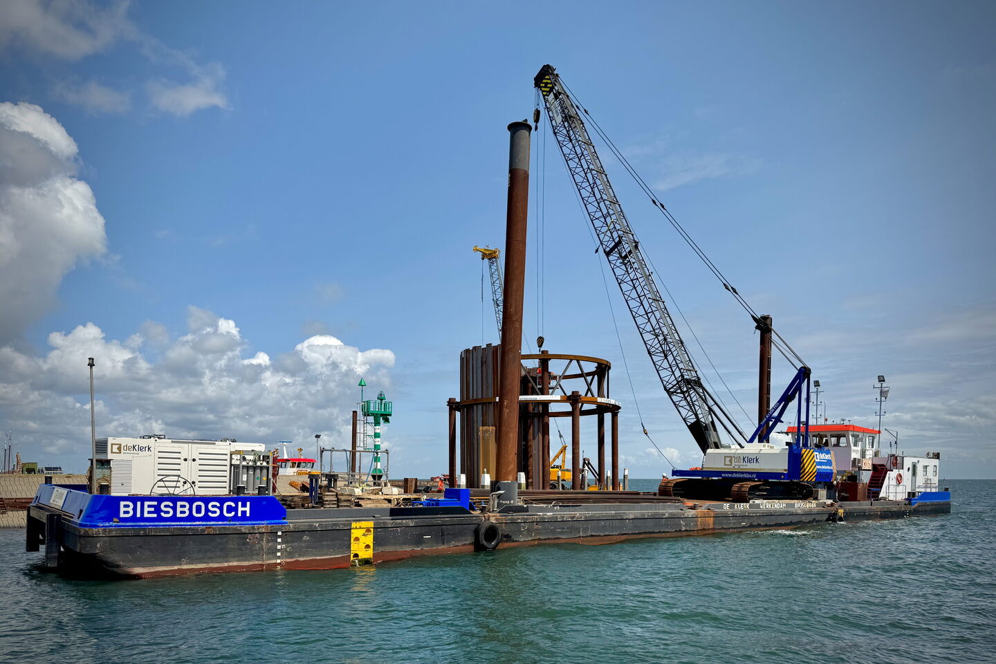 Naast het plaatsen van funderingen en constructies is de Biesbosch ook inzetbaar voor hijswerkzaamheden. Of het nu gaat om het aanbrengen van zware onderdelen of het opbouwen van steigers, dit heischip combineert kracht met precisie.