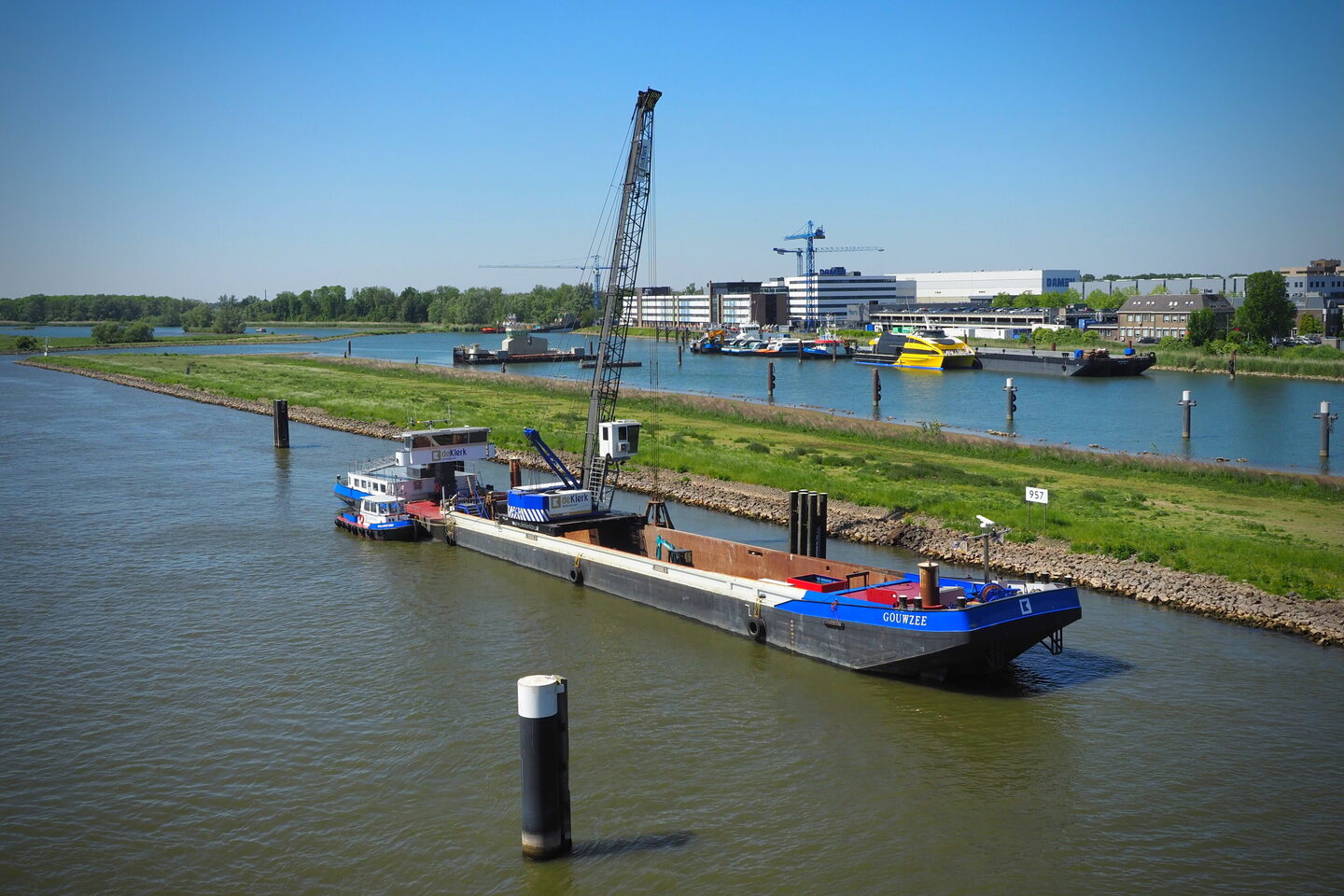 Bovendien beschikt de Gouwzee en PLM 65 HD over moderne navigatie- en plaatsbepalingssystemen, zoals GPS-RTK en PDS 2000, waarmee de baggergrijper tot op de centimeter nauwkeurig kan worden gepositioneerd.