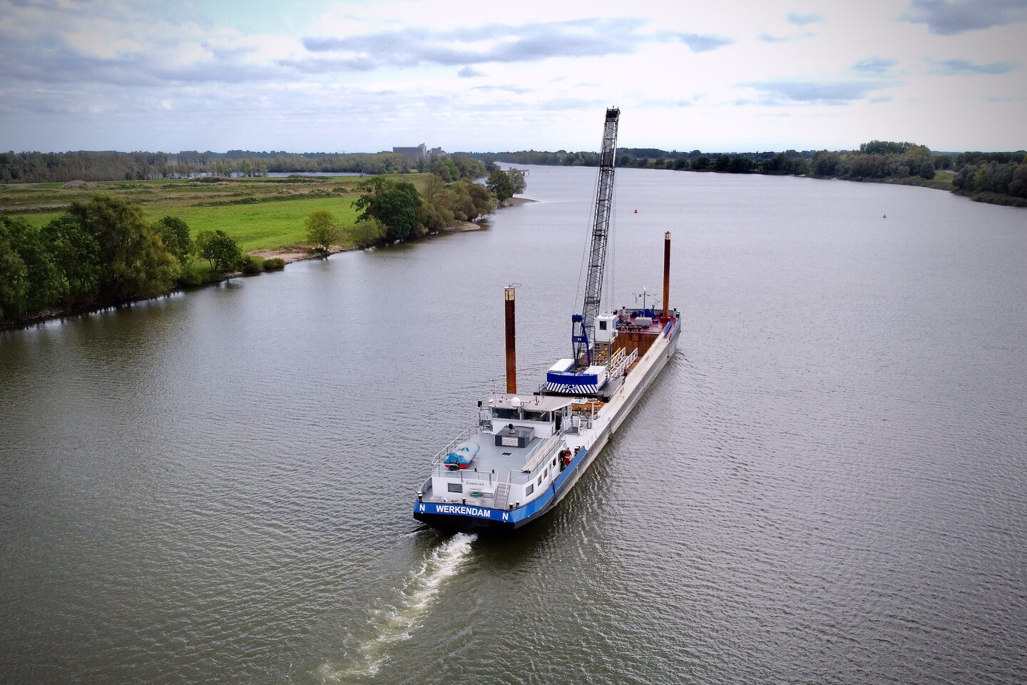 De voortstuwing wordt verzorgd door een krachtige hoofdmotor van 1.016 pk (Stage V compliant), waardoor we een duwcapaciteit hebben van maximaal 2.000 ton in zowel op-als afvaart. Daarnaast zijn er twee spudpalen aan boord met een maximale lengte van 30 meter, waarmee het schip stevig kan worden verankerd, zelfs in uitdagende omstandigheden.