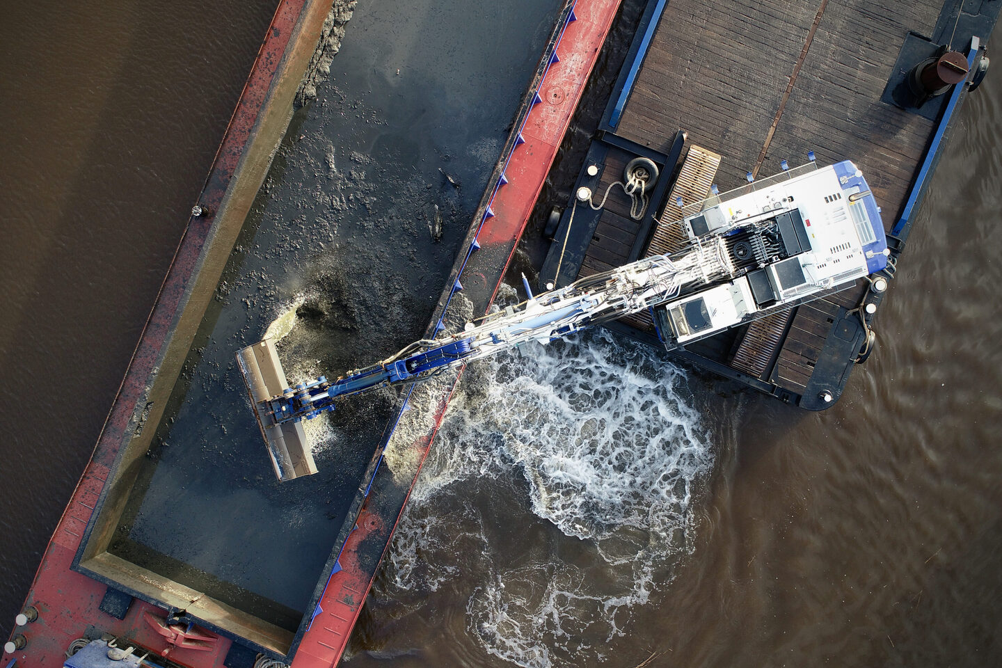 De machine is uitgevoerd met een verlengde stick van 5,8 meter en kan worden uitgerust met onder meer een overslaggrijper en poliep, waardoor zij uitermate geschikt is voor overslag-, hijs- en baggerwerkzaamheden. Voor nauwkeurige uitvoering van baggerwerk is de R956LC-VW voorzien van PDS 2000 software, in combinatie met diverse positie- en dieptesensoren. Dit systeem ondersteunt de machinist bij het real-time monitoren van graafdieptes en profielnauwkeurigheid, wat resulteert in efficiƫnt en gecontroleerd werken.