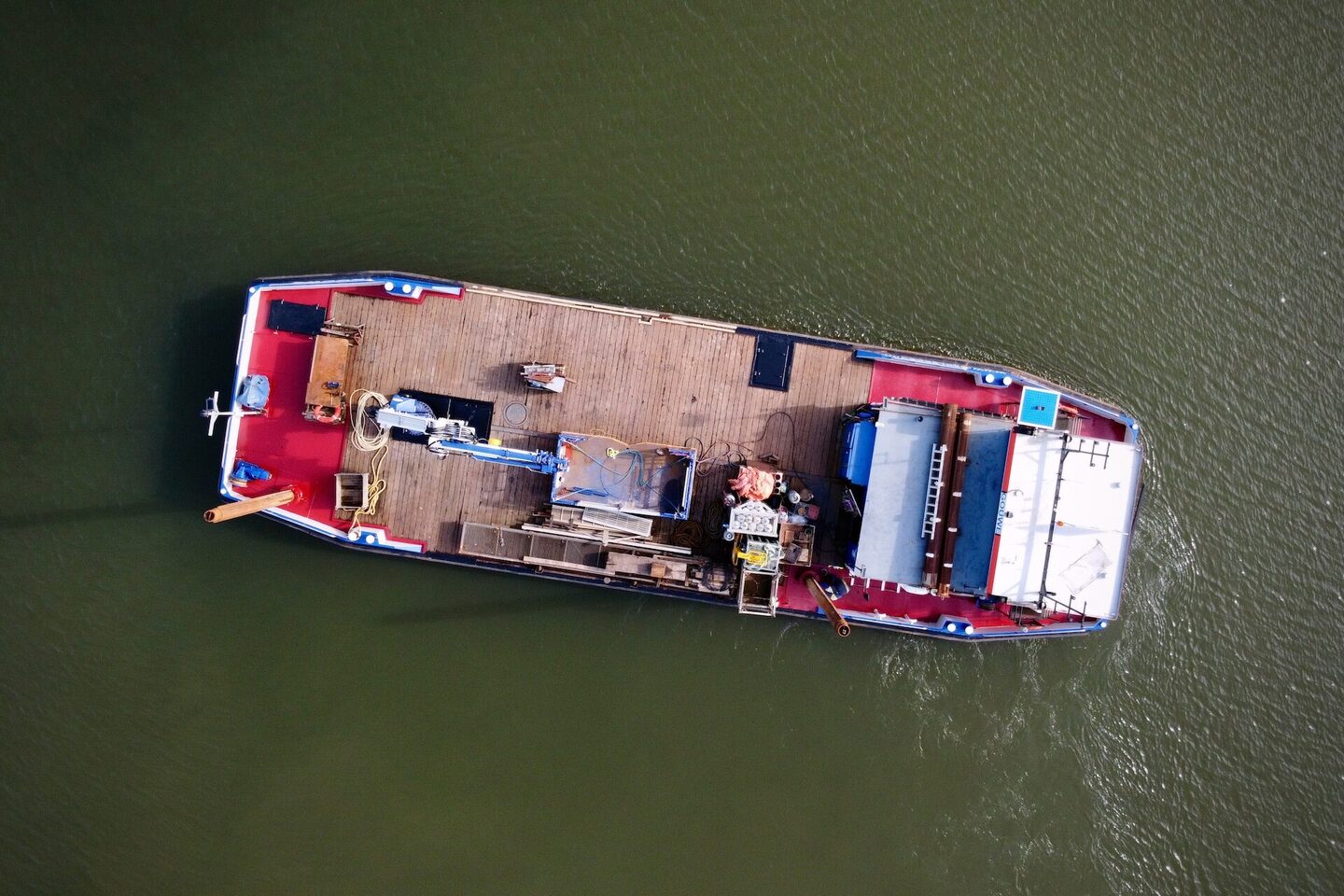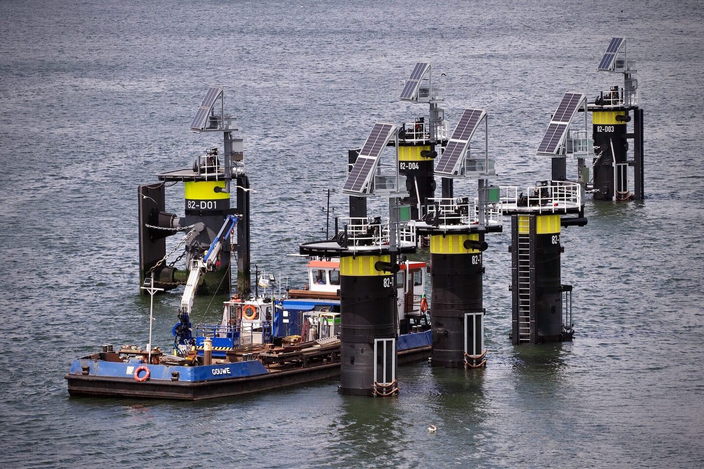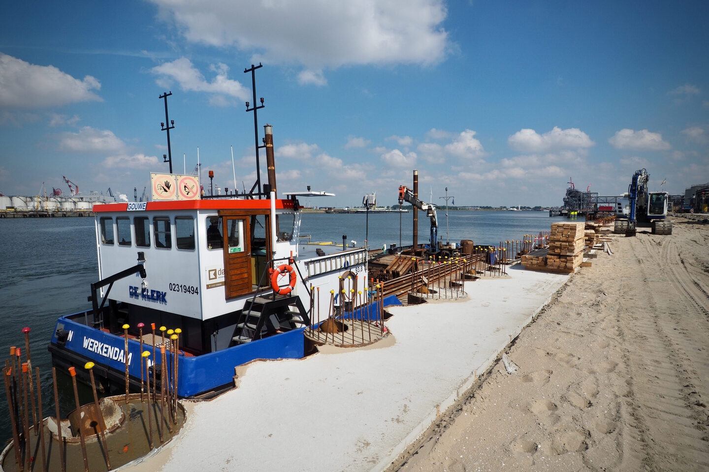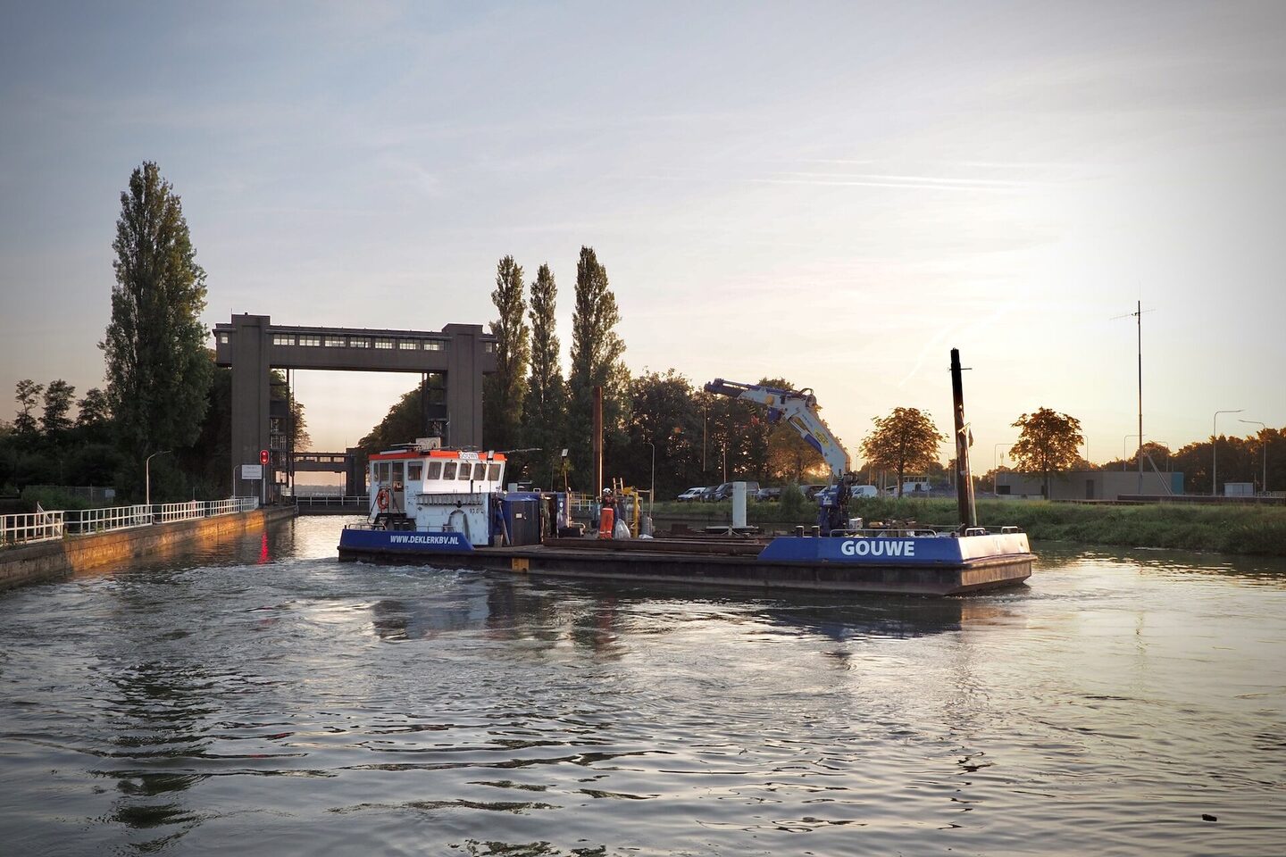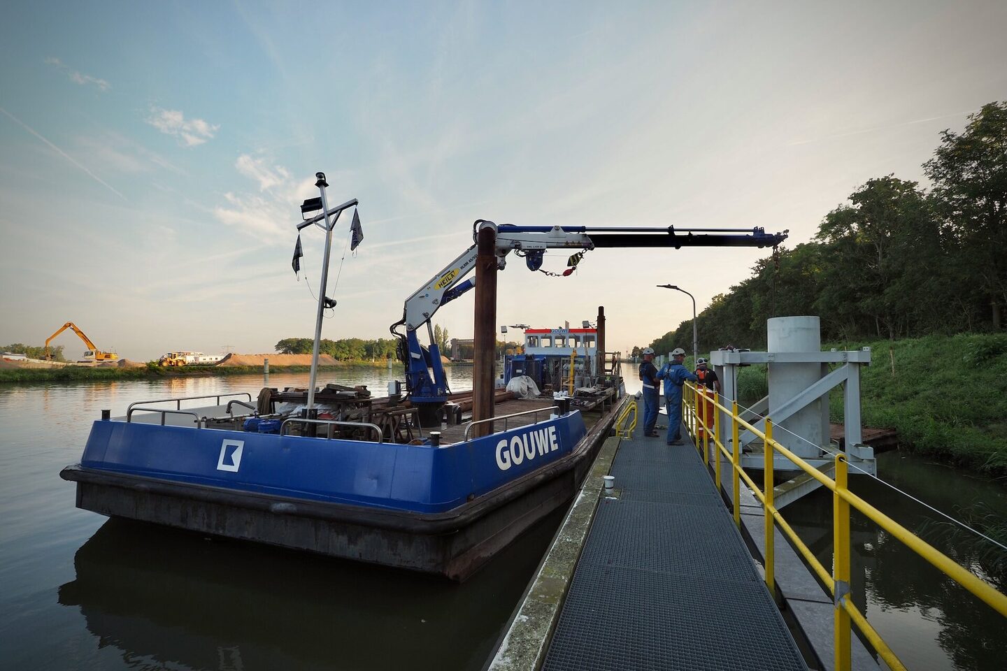 Het werkschip Gouwe is een veelzijdig werkpaard van 26,8meter lang en 8,4meter breed. Met een maximum diepgang van slechts 1,40meter is hij uitermate geschikt voor werkzaamheden op ondiepe wateren.