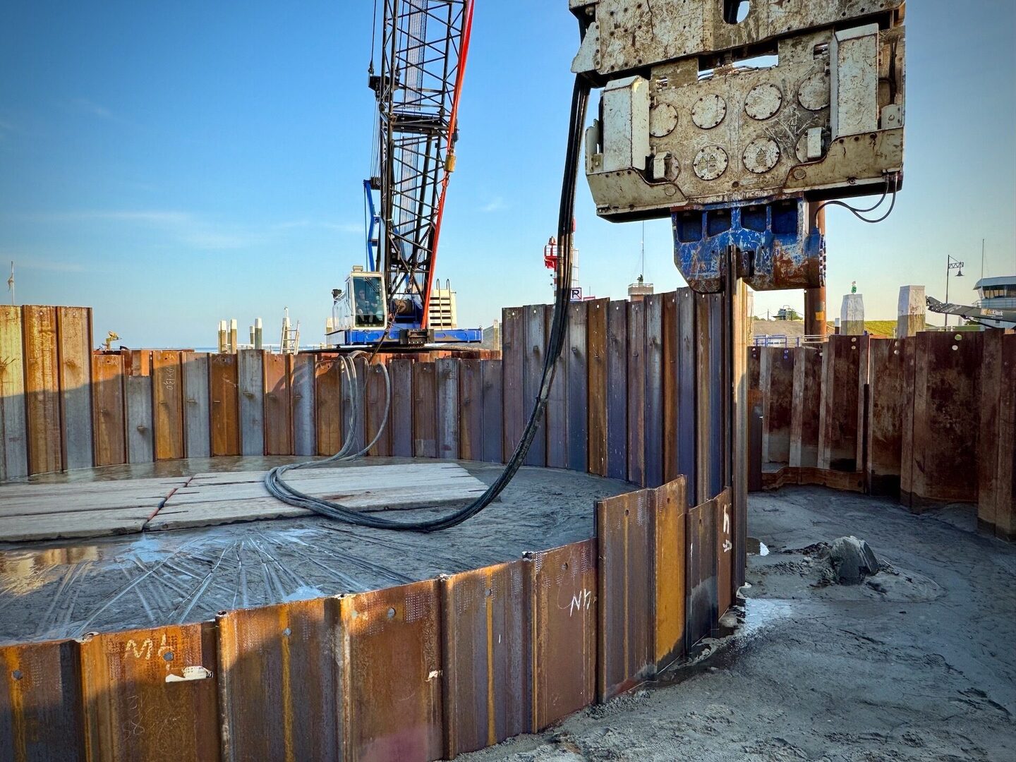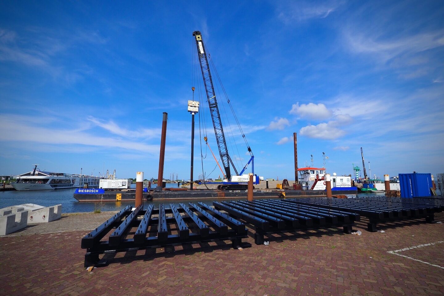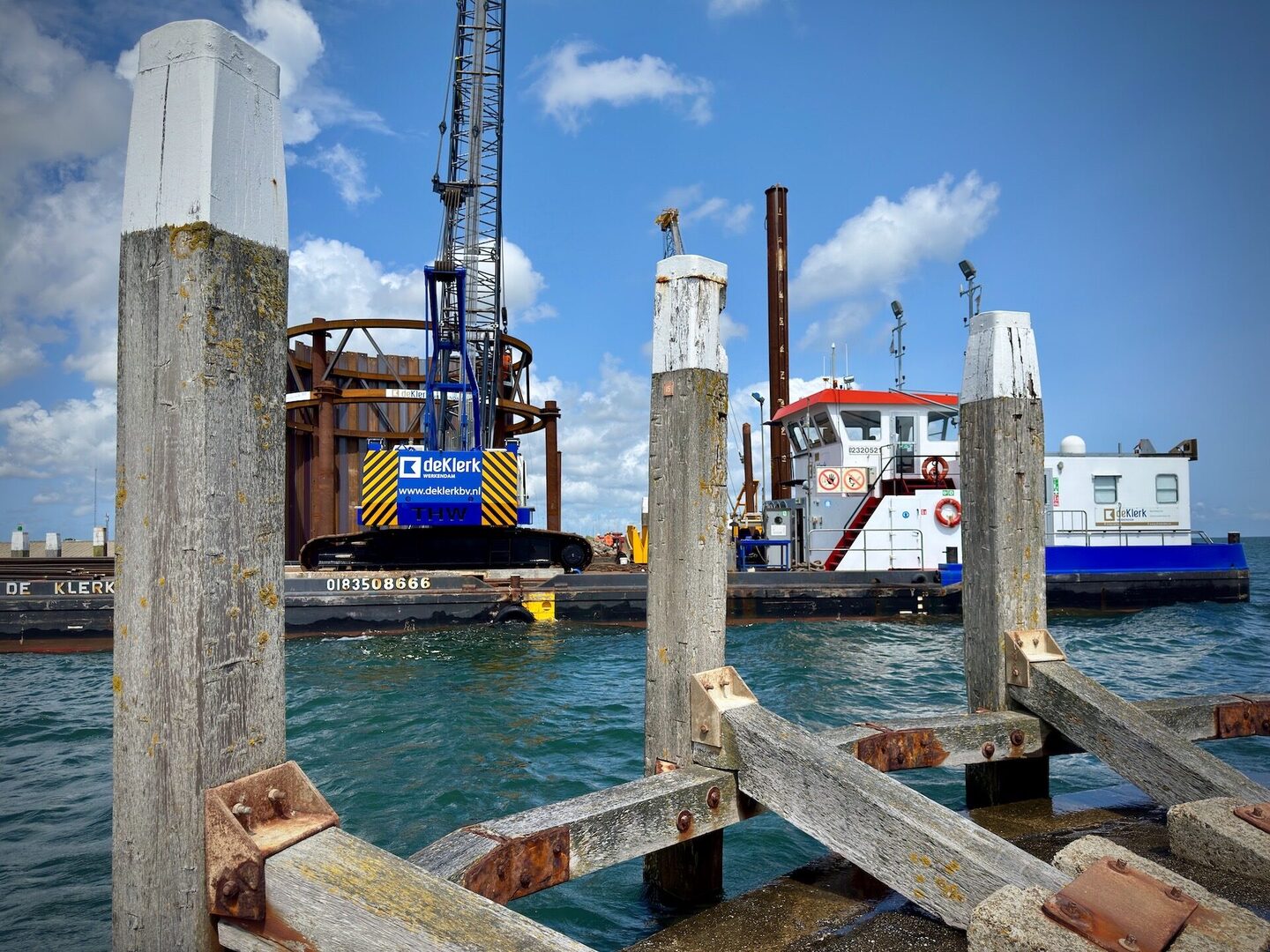 Het bestaande ronddeel was aan het einde van zijn levensduur en vereiste vervanging. Het ronddeel heeft als functie om de golfoploop in de haven te verminderen. Vanwege de complexiteit van deze werkzaamheden is gekozen voor een bouwteamaanpak (De Klerk, Movares en Gemeente Texel). Binnen dit bouwteam kwamen de eisen en wensen van de opdrachtgever samen met de uitvoeringskennis en expertise van De Klerk. Hierdoor kon het project efficiënt worden voorbereid en uitgevoerd, zonder verrassingen tijdens de realisatie. Voor het aanbrengen van de nieuwe damwandprofielen is een speciaal heiframe ontwikkeld, volledig in eigen huis ontworpen en vervaardigd door De Klerk Staalbouw. Dit project toont opnieuw de kracht van het werken binnen één organisatie, waarin ontwerp en uitvoering naadloos op elkaar aansluiten.