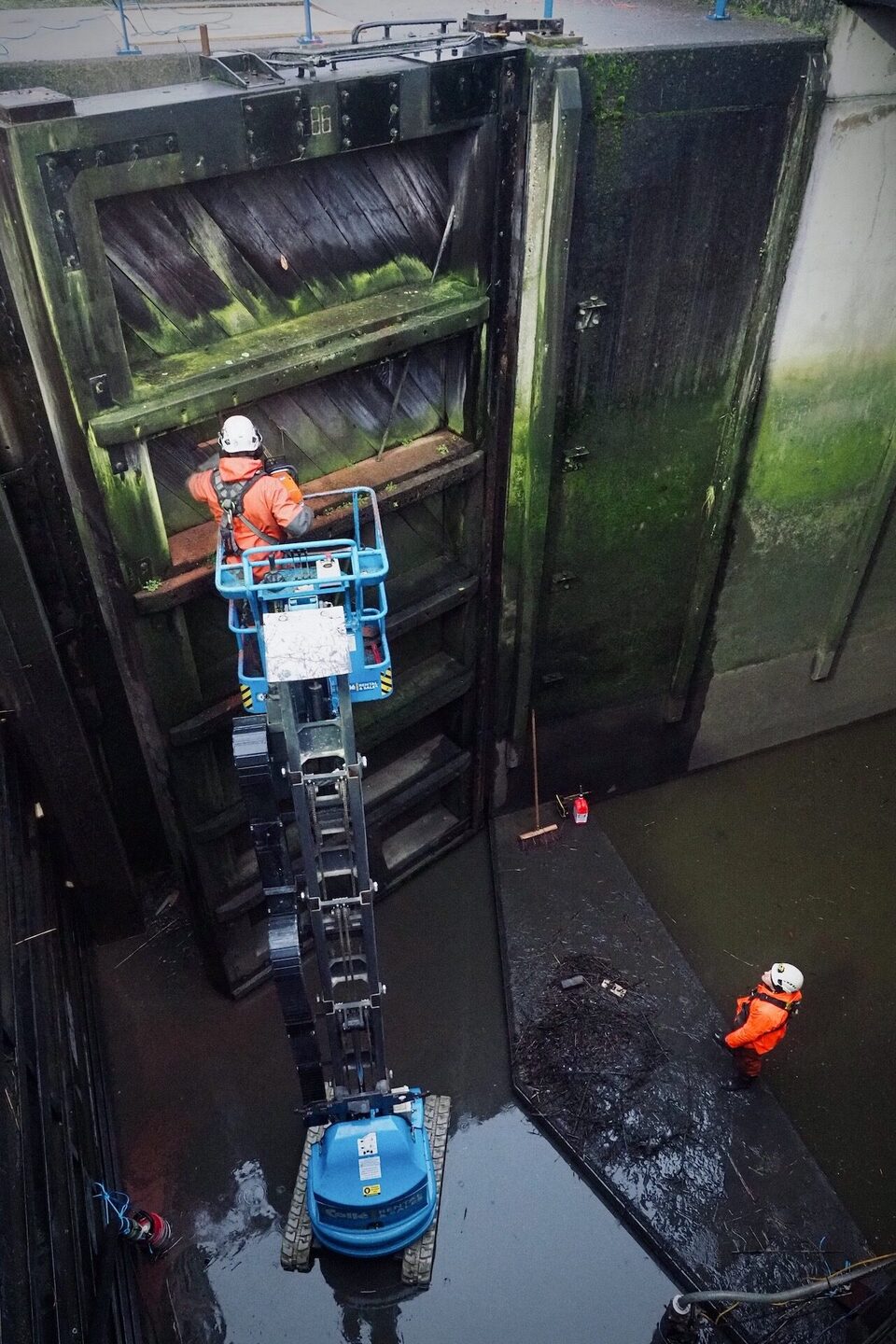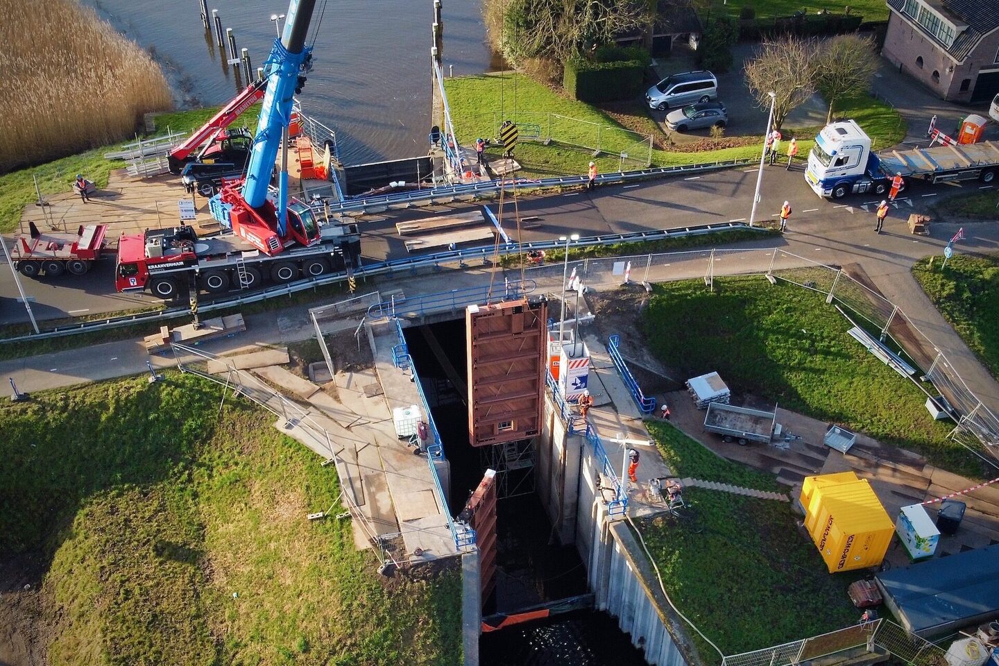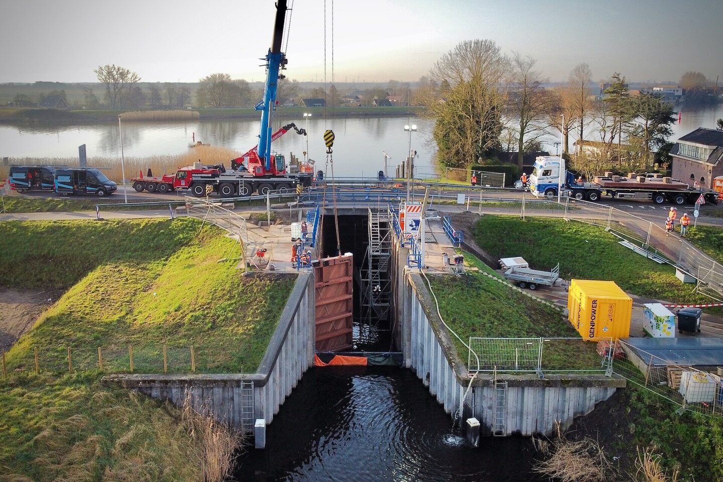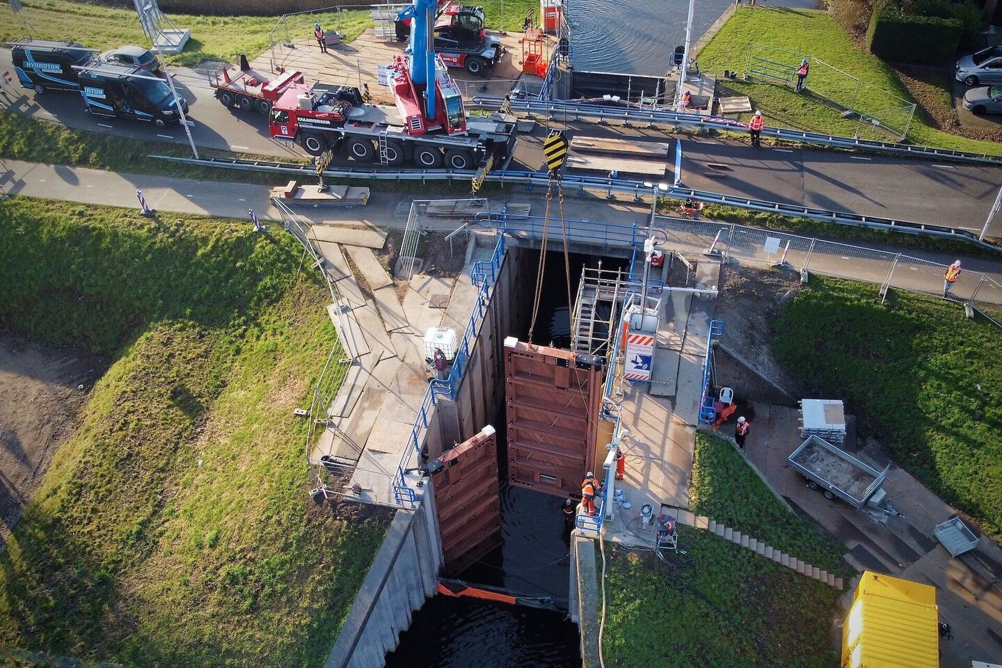 Labrujère Werktuigbouw heeft het ontwerp en de uitvoering in nauwe samenwerking uitgevoerd met de onderaannemers Hoppenbrouwers (E-werk), Hydroton (Hydrauliek) en Batenburg (Software). Hierbij werden kennis en ervaring op een mooie manier samengebracht. Om de werkzaamheden en inspecties goed uit te kunnen voeren is de sluis droog gepompt. Tijdens het droogpompen van de sluiskolk was er ook aandacht voor de aanwezige fauna; de vissen zijn vakkundig gevangen en in het open water teruggezet. Na een uitvoeringsperiode van zo`n acht weken zijn de deuren en dus ook de sluis weer klaar voor de toekomst.