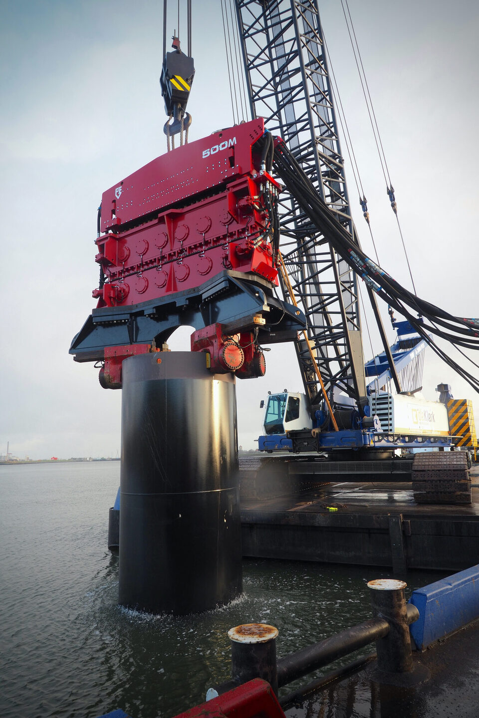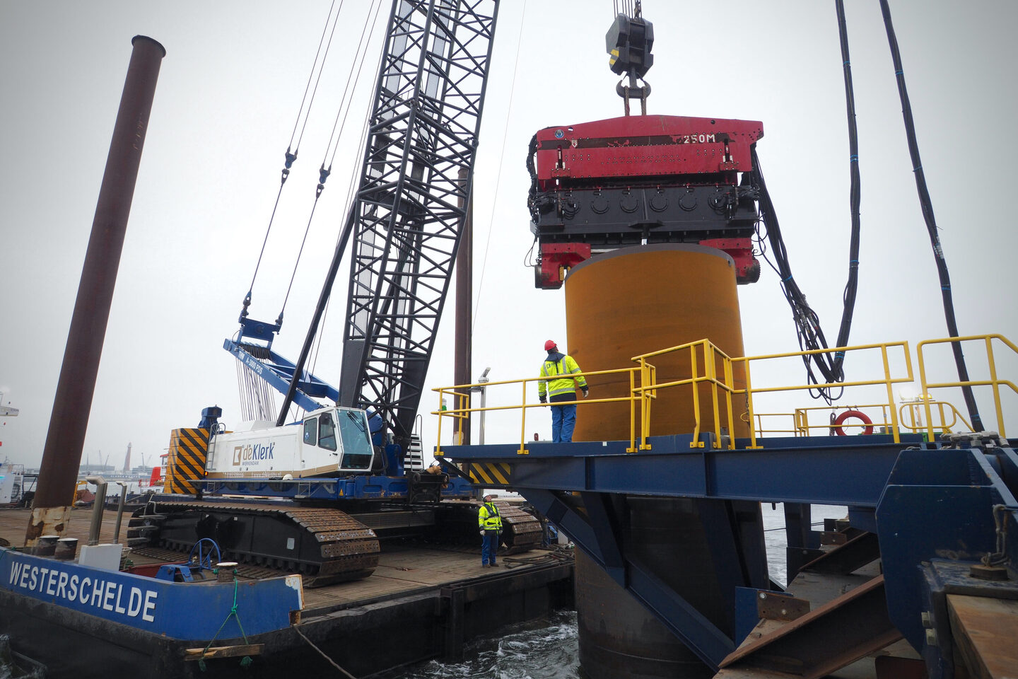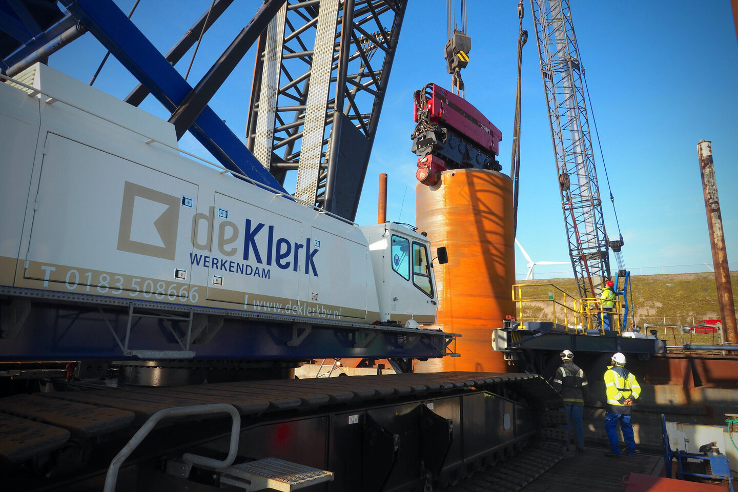 Juli 2019 werd de opdracht gegund en eind 2019 was de klus geklaard. Projectleider Lucas Kamphuis heeft al aardig wat meegemaakt maar dit karwei hield hem af en toe uit zijn slaap. “Alles is groot en zwaar, maar de voorbereiding is als Meccano speelgoed, je hebt heel veel onderdelen die in elkaar grijpen. Alles moet passen. VGM-plan, staalwerkplan, sloopplan, funderingsplan, monitoringsplan, hijsplan, conserveringsplan, afbouwplan, om maar even een paar plannetjes te noemen. Een dag vertraging is geen optie. Uitvoerder Rolph Bolwerk: “In de tenderfase was een hydraulisch trilblok begroot, met een heimuts die paste op een paal van drie en halve meter. Na opdracht bleek er geen juiste heimuts voor het trilblok beschikbaar te zijn. Waar haal je dan even een vervangend trilblok vandaan? Op zo’n moment komt de echte waterbouwer boven en kies je voor een uniek trilblok dat normaliter in de offshore wordt gebruikt. De PVE500M, een hydraulisch trilblok van 70.000 kilogram. Als je deze week belt moet je niet denken dat je er volgende week eentje hebt.” Maar ook dat is gelukt.