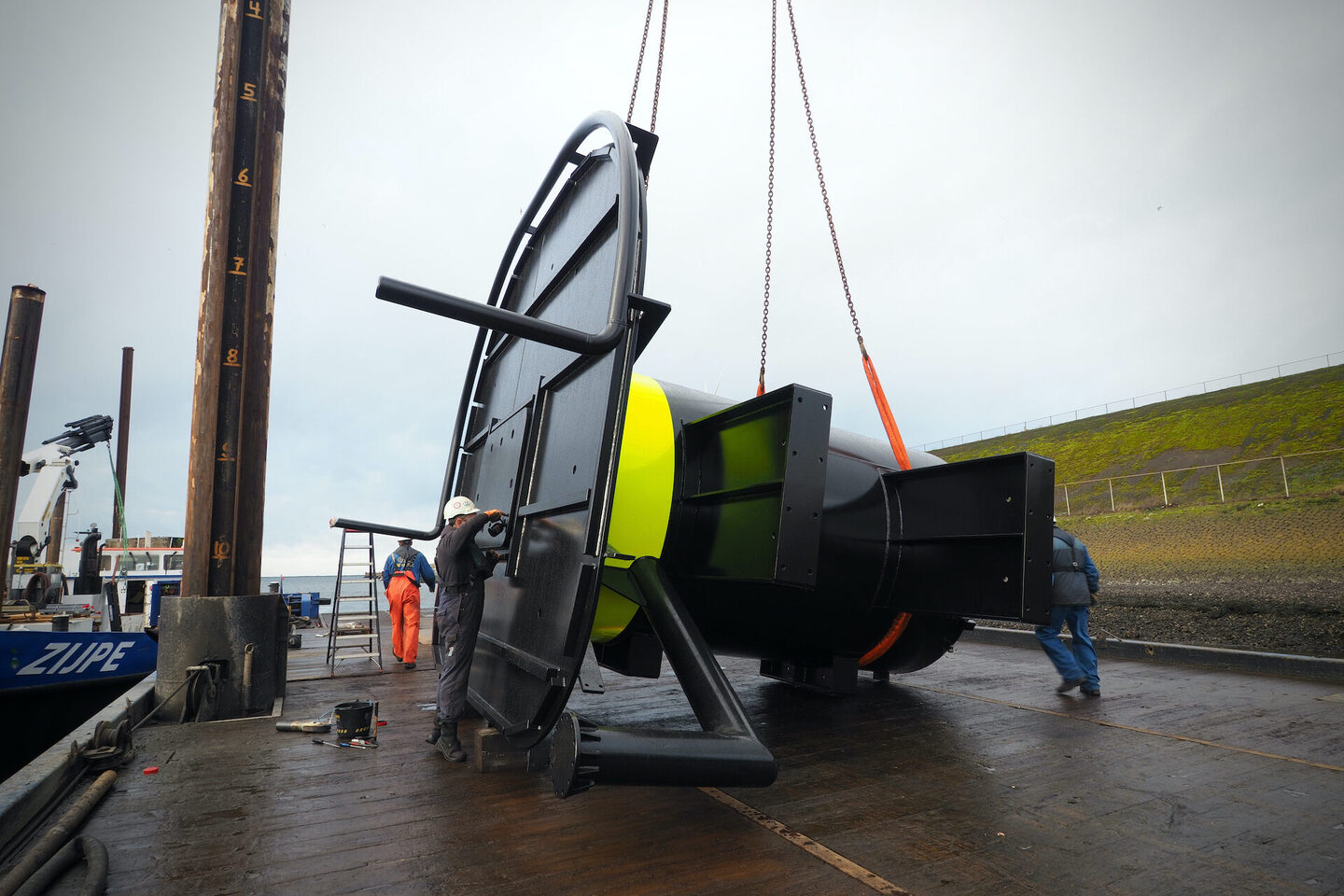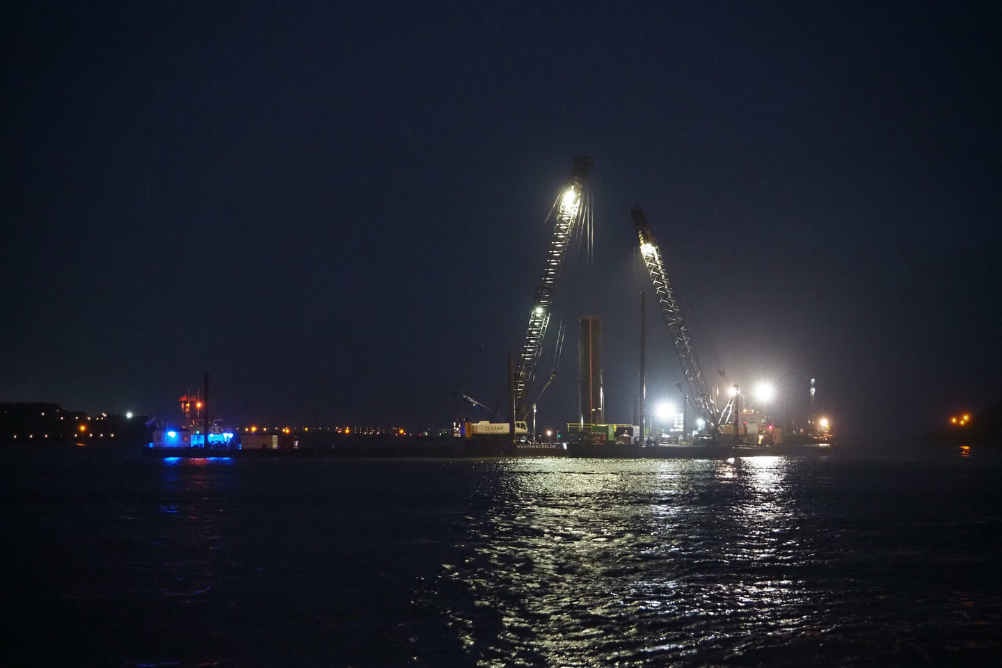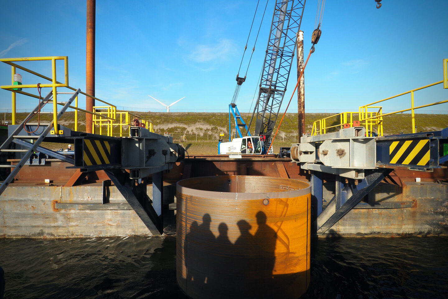 Juli 2019 werd de opdracht gegund en eind 2019 was de klus geklaard. Projectleider Lucas Kamphuis heeft al aardig wat meegemaakt maar dit karwei hield hem af en toe uit zijn slaap. “Alles is groot en zwaar, maar de voorbereiding is als Meccano speelgoed, je hebt heel veel onderdelen die in elkaar grijpen. Alles moet passen. VGM-plan, staalwerkplan, sloopplan, funderingsplan, monitoringsplan, hijsplan, conserveringsplan, afbouwplan, om maar even een paar plannetjes te noemen. Een dag vertraging is geen optie. Uitvoerder Rolph Bolwerk: “In de tenderfase was een hydraulisch trilblok begroot, met een heimuts die paste op een paal van drie en halve meter. Na opdracht bleek er geen juiste heimuts voor het trilblok beschikbaar te zijn. Waar haal je dan even een vervangend trilblok vandaan? Op zo’n moment komt de echte waterbouwer boven en kies je voor een uniek trilblok dat normaliter in de offshore wordt gebruikt. De PVE500M, een hydraulisch trilblok van 70.000 kilogram. Als je deze week belt moet je niet denken dat je er volgende week eentje hebt.” Maar ook dat is gelukt.