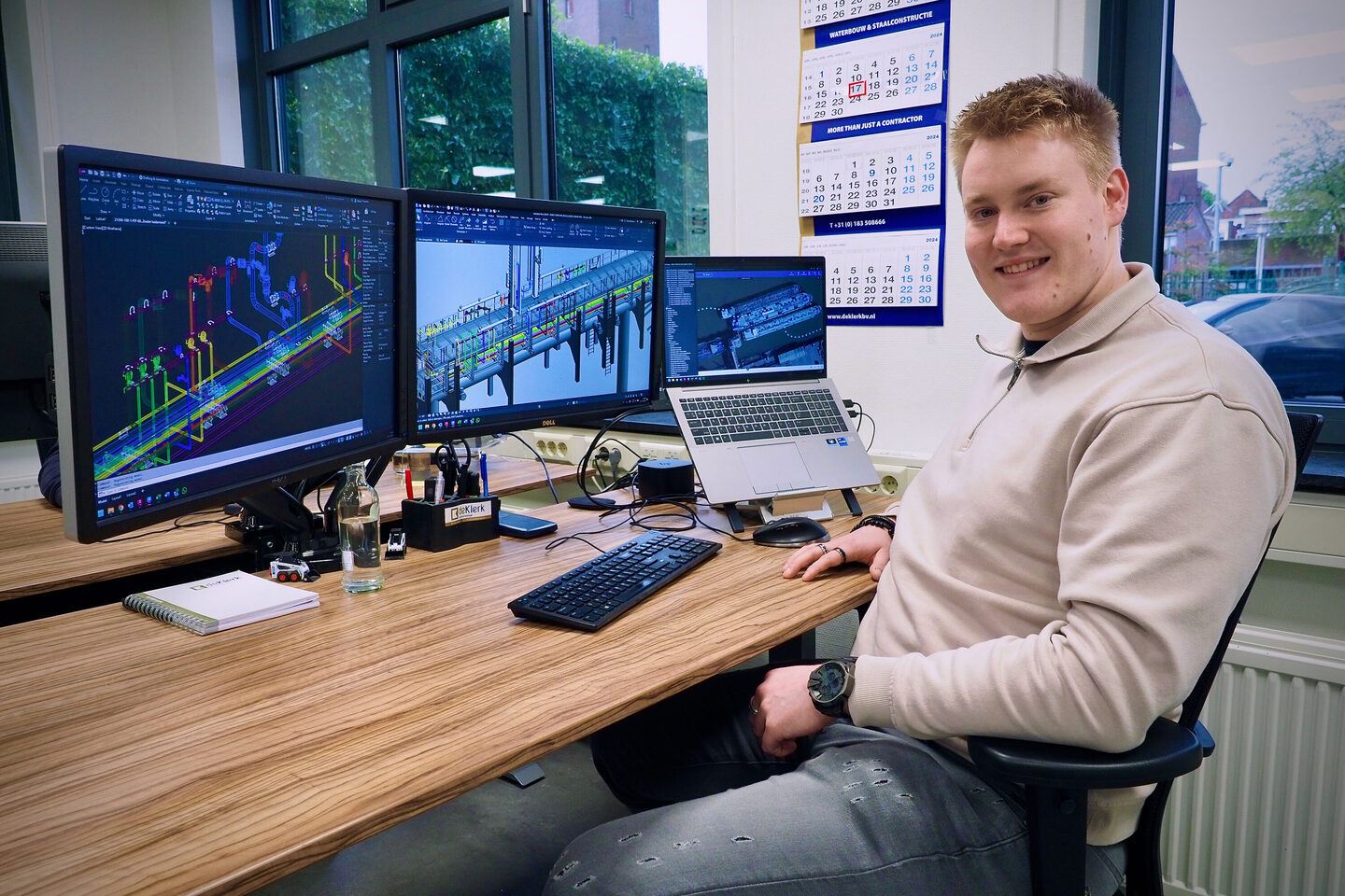 "Bij De Klerk heb ik de kans gekregen om te groeien. Ik ben trots op de groei die ik heb doorgemaakt en ben nog elke dag in ontwikkeling. Daar heb ik ook ontzettend hard mijn best voor gedaan, en dat werpt nu zijn vruchten af". Tom heeft niet alleen op zijn werk een groei gemaakt, maar ook in zijn persoonlijke ontwikkeling. "Voor nu zit ik op mijn plek, maar wellicht dat ik in de toekomst nog eensde ambitie heb om te gaan rekenen in plaats van alleen te tekenen, maar alles op zijn tijd."